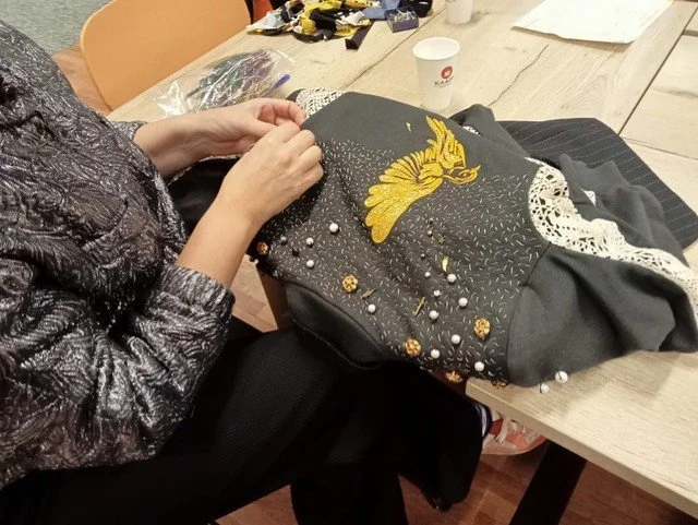 Vandaag verschuift alles van papier naar stof. Wat eerst tekst en beeld was, wordt tastbaar. Kleding is nooit neutraal; zij omlijst en onthult tegelijk. Wanneer je woorden borduurt of symbolen schildert, geef je jouw verhaal een fysieke aanwezigheid. De blazer of bloes wordt geen decoratie maar een drager van betekenis. Door zorgvuldig te kiezen wat zichtbaar mag zijn en wat verborgen blijft in de voering, ontdek je hoe identiteit zich vormt tussen binnen en buiten. Het mysterie van wie je bent verschijnt niet in uitleg, maar in hoe je jezelf toont.